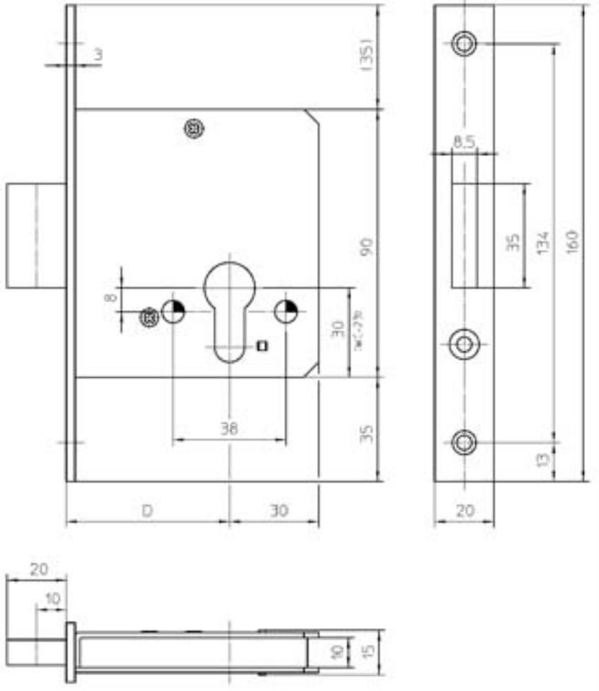 ZT-Einsteckriegelschloss, PZ,D55,20kt,DL/DR