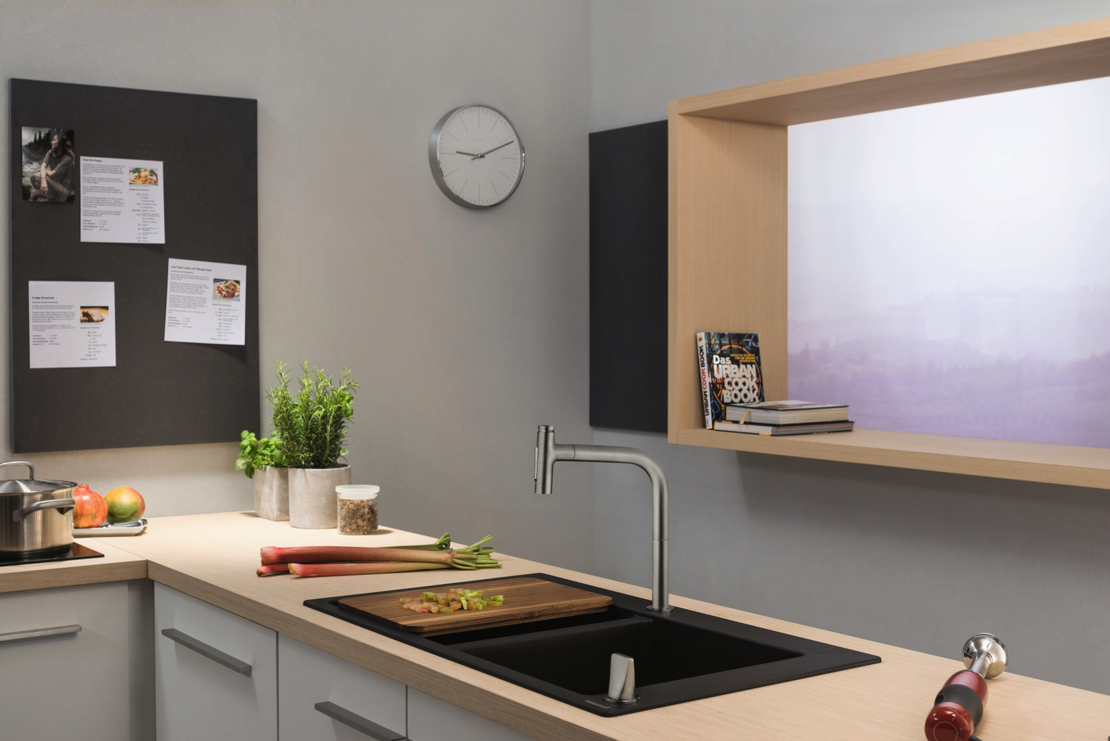 hansgrohe 2-Loch-Spültisch-Einhebelmischer 200 Metris Select M71 mit Ausziehauslauf, 1jet, sBox, Edelstahl-optik W302931