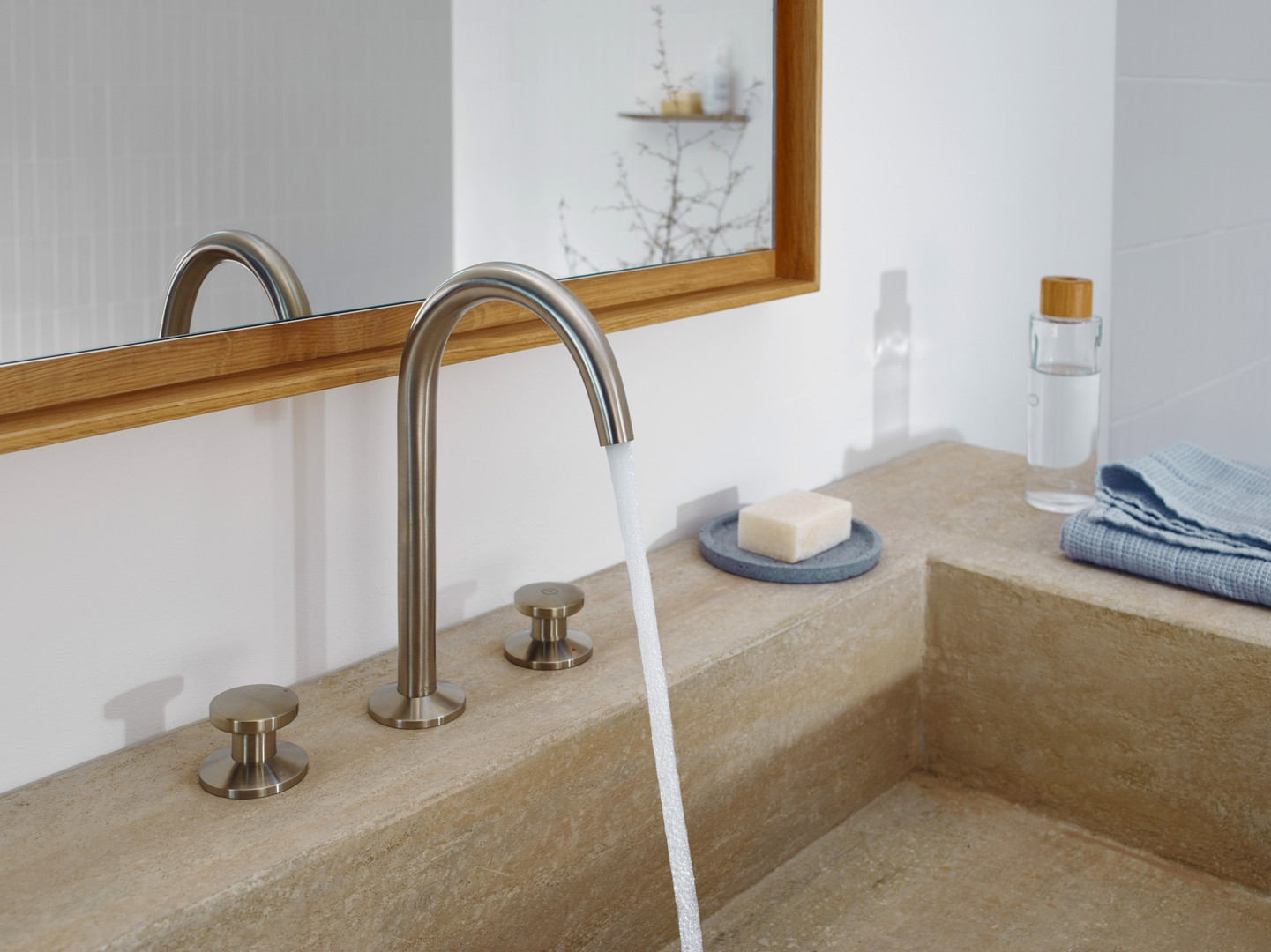 hansgrohe 3-Loch-Waschtisch-Armatur Select 170 Axor One Ausladung 140mm, mit Push-Open-Ablaufgarnitur, brushed bronze W303892