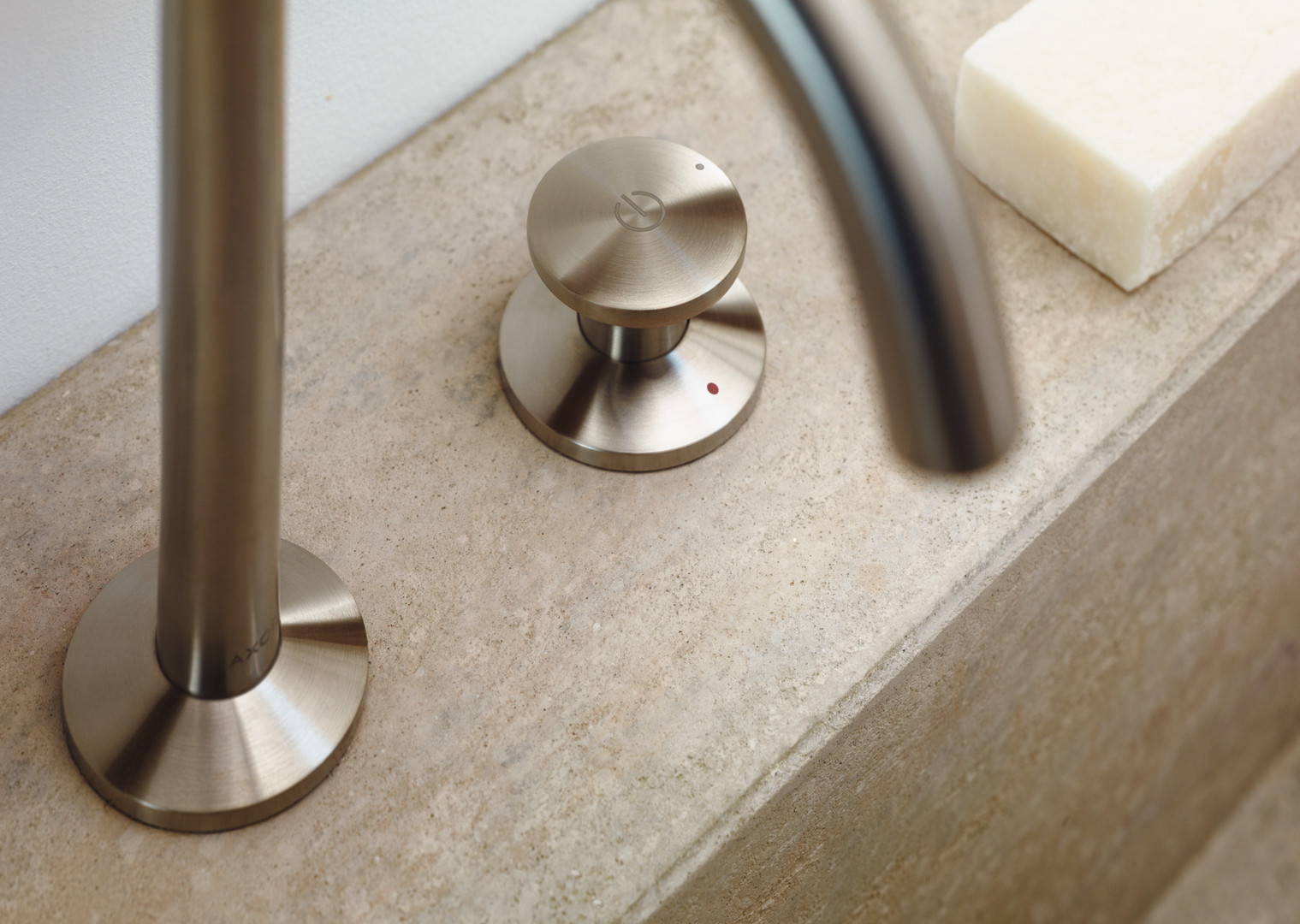 hansgrohe 3-Loch-Waschtisch-Armatur Select 170 Axor One Ausladung 140mm, mit Push-Open-Ablaufgarnitur, brushed nickel