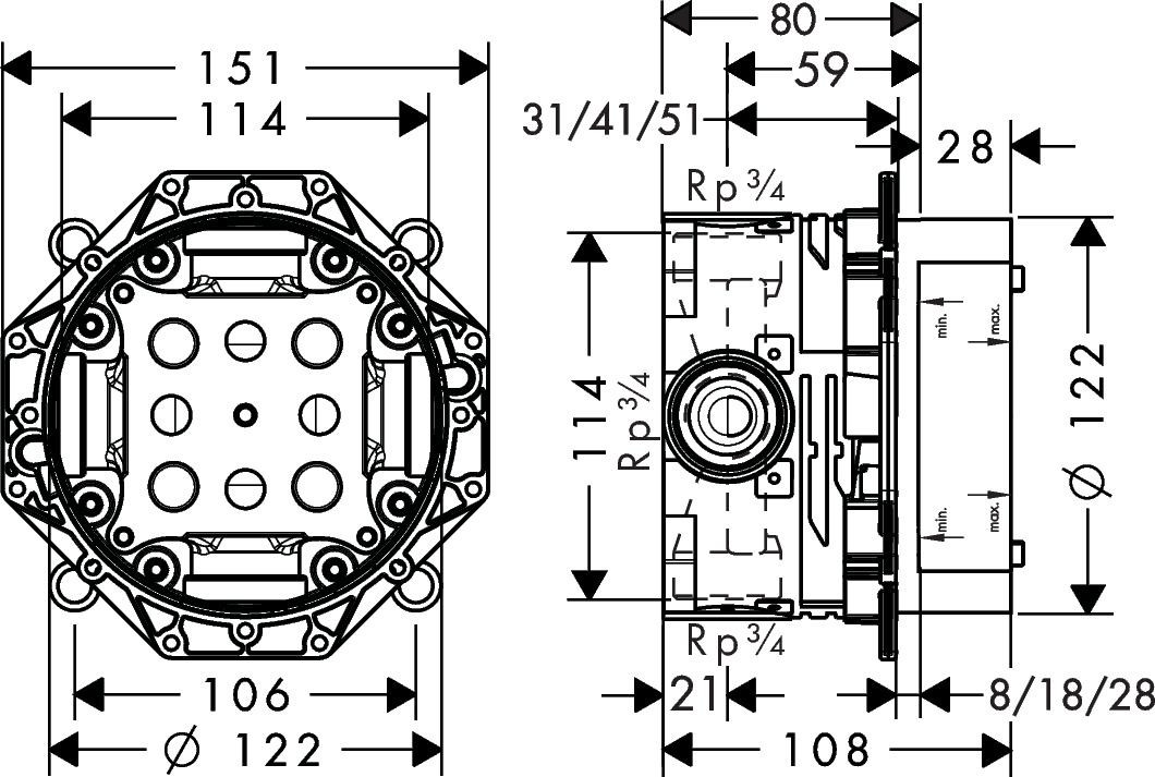hansgrohe 922 Universal-Einbaukörper für UP-Wannen/Brause-Einhebelmischer