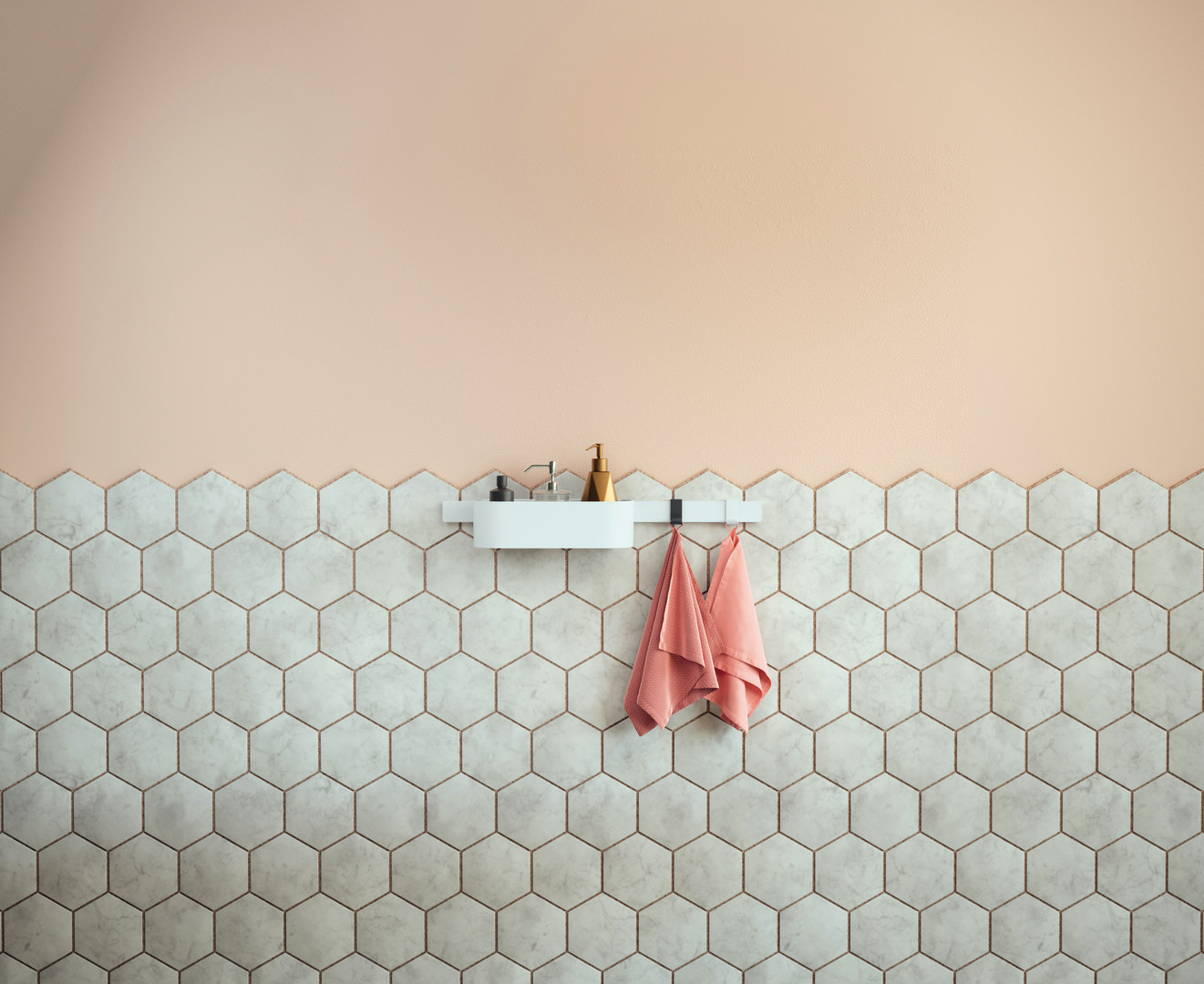 Material durchgefärbter Kunststoff, Aussparung zum Abfließen von Wasser, wird auf die Wandstange geklickt, Aufbewahrungsmöglichkeit für Duschabzieher, zur Aufbewahrung von Shampoo, Duschgel, Rasierapparaten, spülmaschinenfest, Easy Click