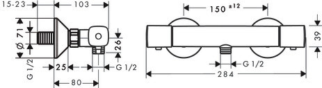 hansgrohe Brausethermostat Ecostat universal 284x80mm, AP, 1 Verbraucher, chrom