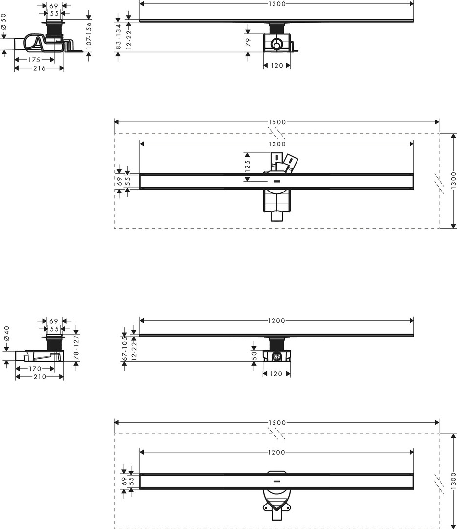 hansgrohe Duschrinne RainDrain Allround 1200 mm, Komplettset, Edelstahl gebürstet W344694