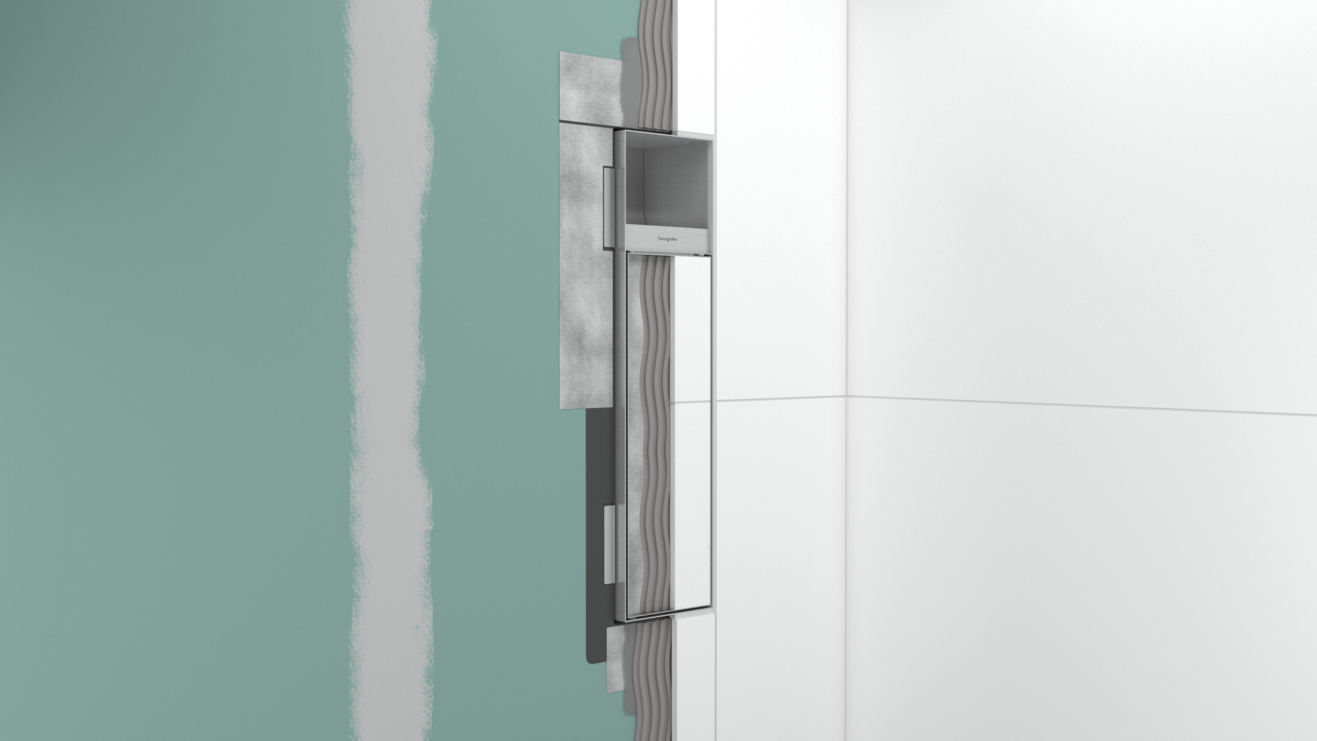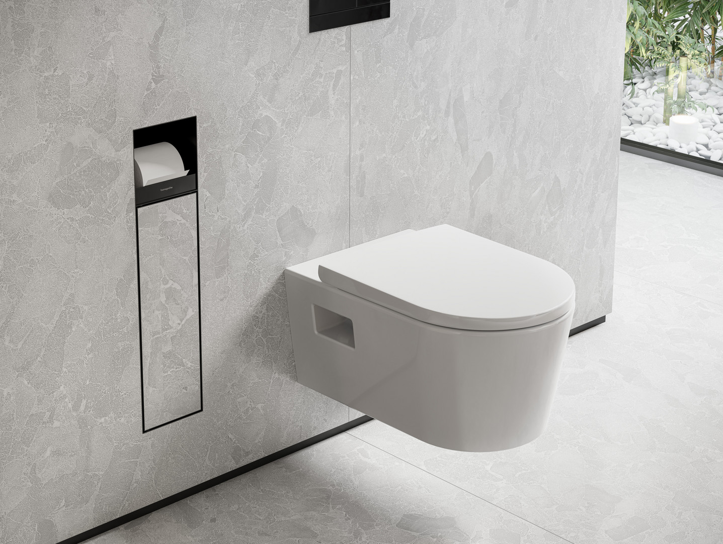bestehend aus: Wandnische mit befliesbarer Tür, Toilettenbürstenhalter, Papierrollenhalter, Installationsset, Dichtungsset, Push-Open-Tür 12 mm tief, Einbautiefe 140 mm, Anwendungsbereich Neubau, Sanierung, Anpassung an Fliesenstärke möglich, rahmenloses Design, Wandtyp Trockenbau, Nassbau, Dichtungsset Polystyrol (PS), Werkstoffgüte Wandnische Edelstahl V2A (1.4301), Bürstenhalter Kunststoff, verchromt, Wandnische 595 x 145 x 140 mm, Dichtungsset 606 x 176 x 140 mm, Vermeidung von Wasserschäden durch wasserdichtes Grundset und vormontiertes Dicht-Vlies