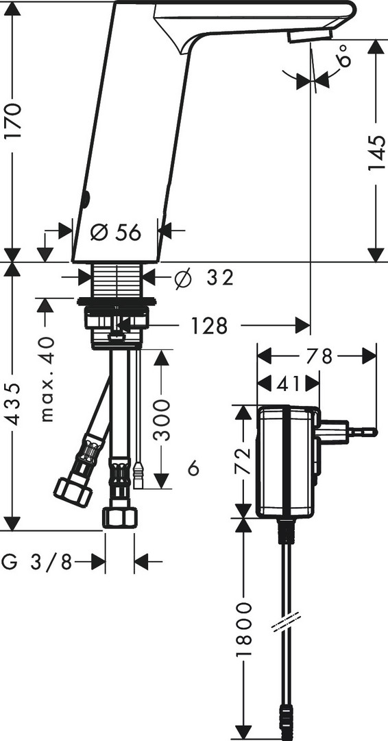 hansgrohe Elektronik-Waschtischarmatur Metris S Netzanschluss, einstellbar, chrom W302567