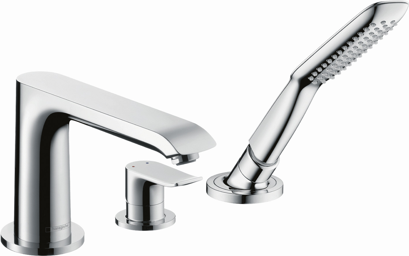 hansgrohe Fertigmontageset Metris 3-Loch-Wannenrand-Einhebelmischer, chrom
