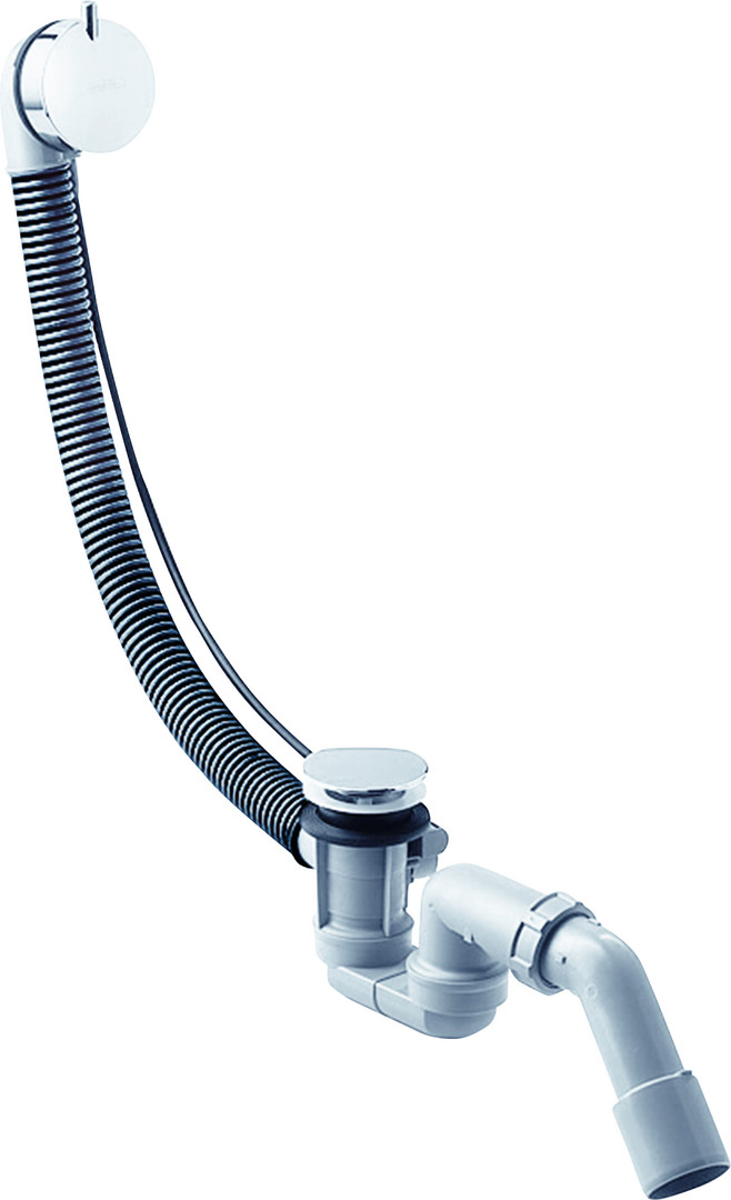 bestehend aus Grundkörper, Fertigset, PE-Verschraubung G 1 1/2 x 40/50 mm, flexibler Überlaufschlauch, Bowdenzuglänge 520 mm, Geruchverschluss, Stauwasserhöhe beträgt 50 mm