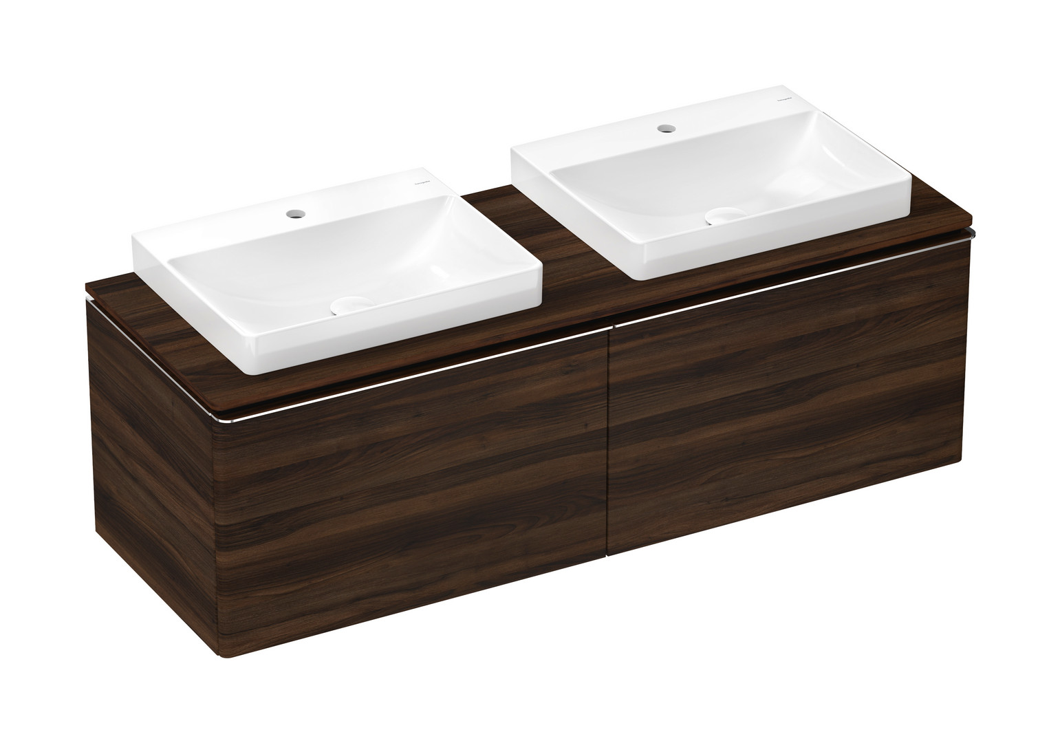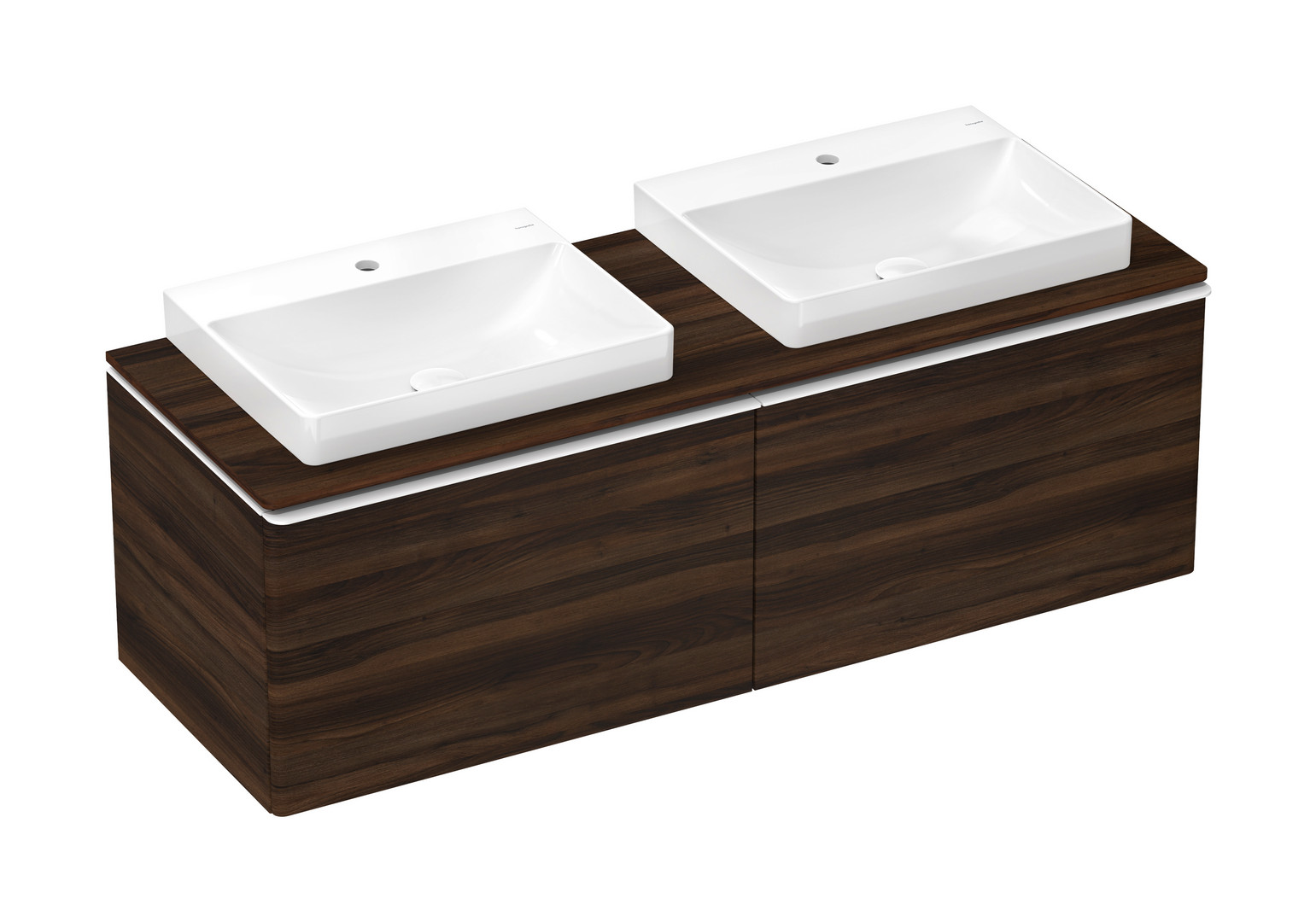 hansgrohe Konsole Xelu Q 1560 x 550 mm, 2 Ausschnitte 600 x 480 mm, Nussbaum dunkel