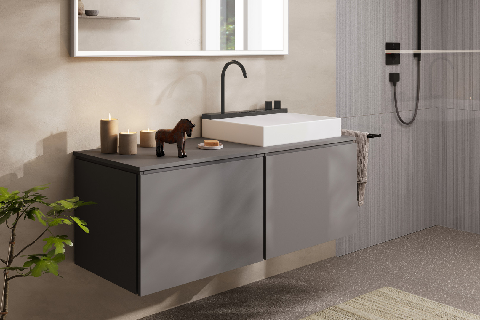 hansgrohe Konsole Xilesa E 1375x550mm, Ausschnitt links, schiefergrau matt W920735