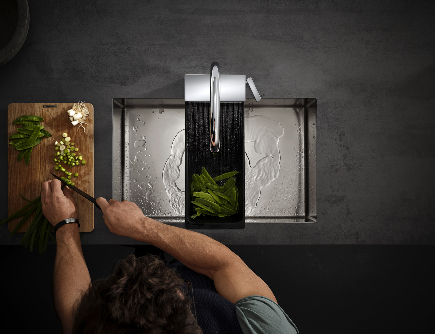 zum Reinigen von Obst und Gemüse oder auch zu abgießen von Nudeln, passend für S51 SilicaTec Spülen, S71 Edelstahlspülen, Küchenspülen mit Beckentiefe 400 mm und 406 mm, aus Kunststoff