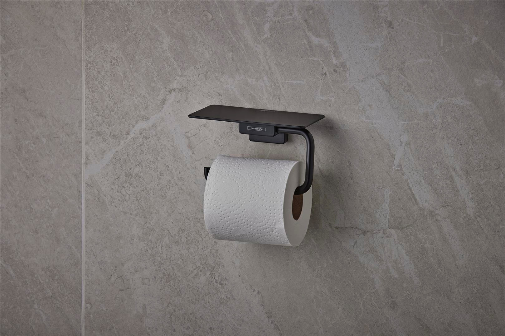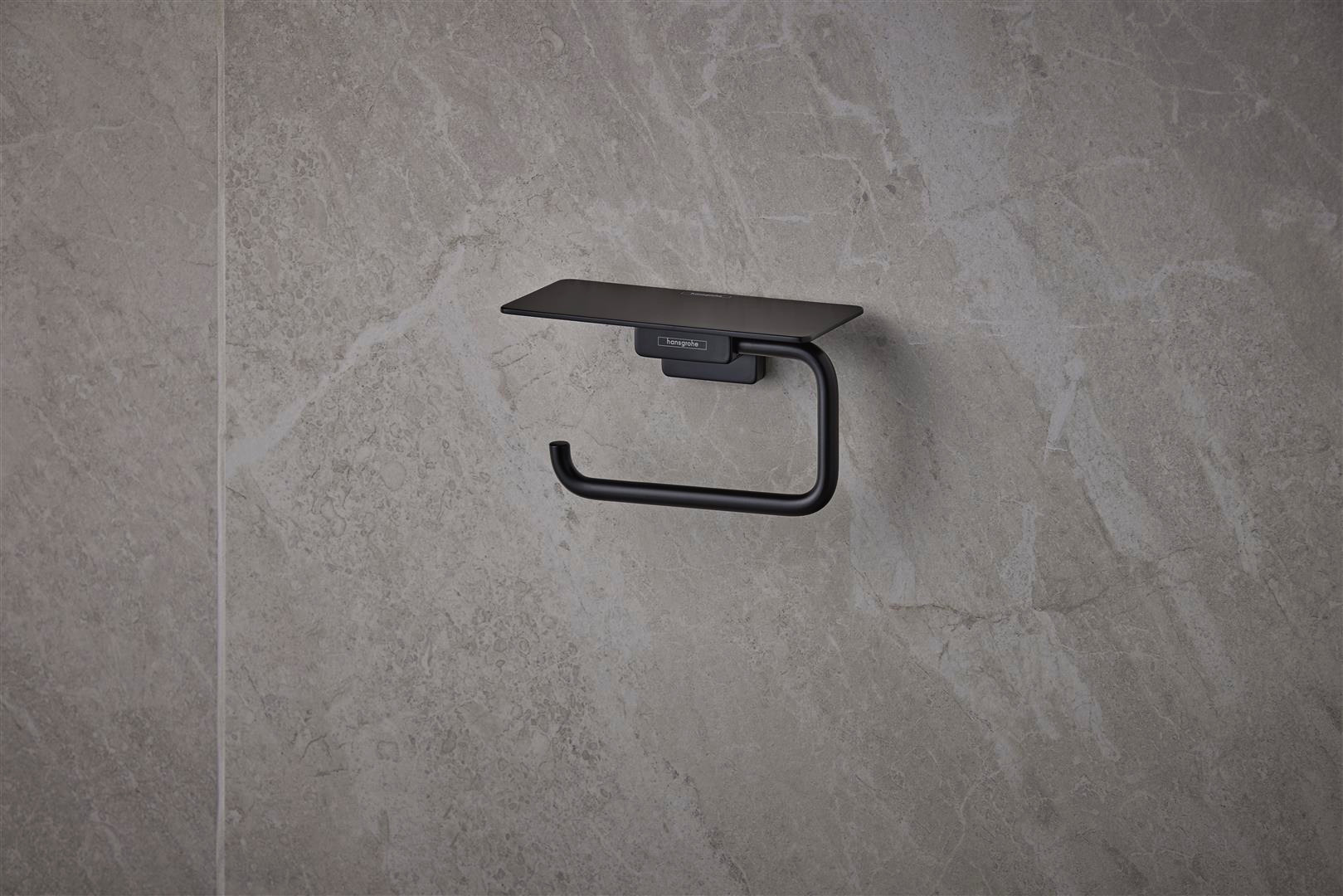 hansgrohe Papierrollenhalter AddStoris mit Ablage, mattschwarz, Wandmontage, Metall