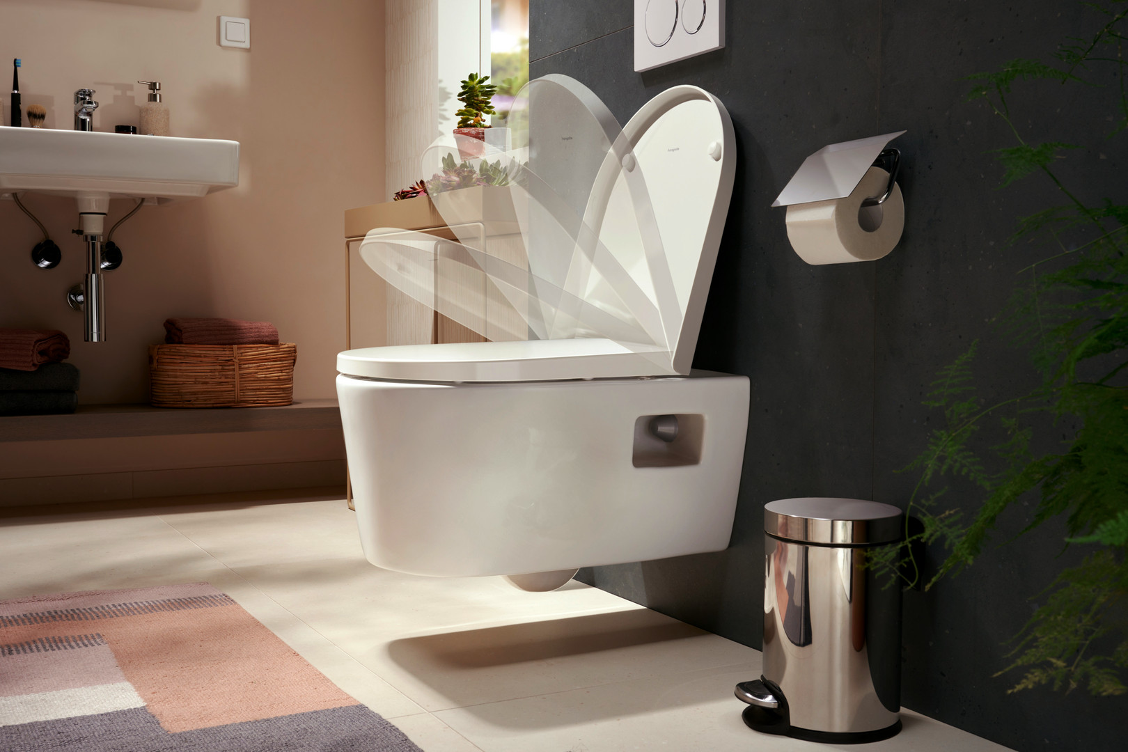 hansgrohe Papierrollenhalter AddStoris mit Deckel, chrom, Wandmontage, Metall