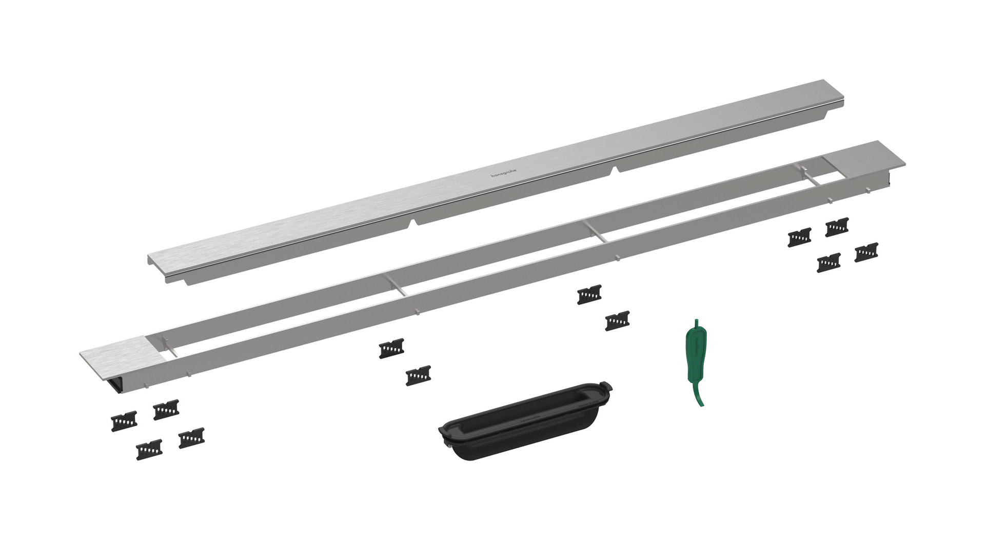 hansgrohe RainDrain Match Plus Duschrinne 800 mm, Edelstahl gebürstet, Fertigset W344703