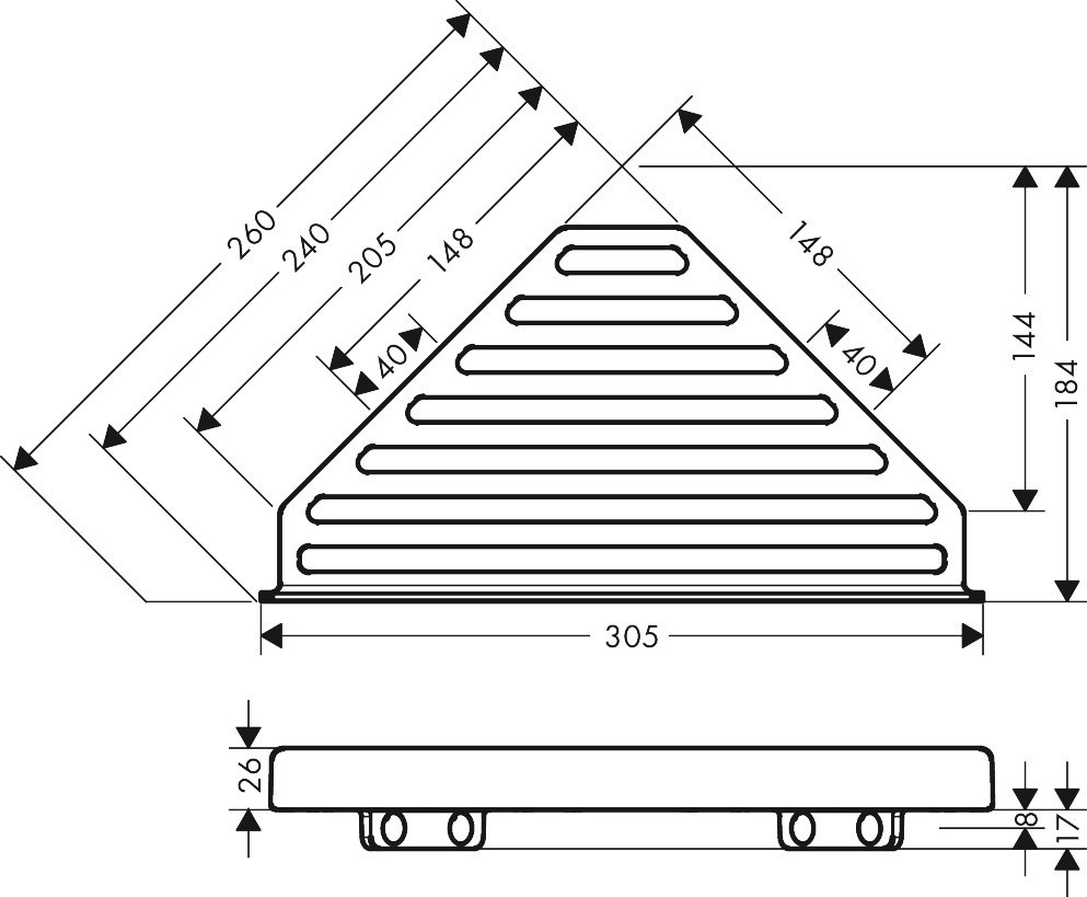 mit Befestigungsmaterial, verdeckte Befestigung, Bohrabstand 40 mm, Durchmesser Bohrloch 6 mm, kann auch als Ablagefläche verwendet werden