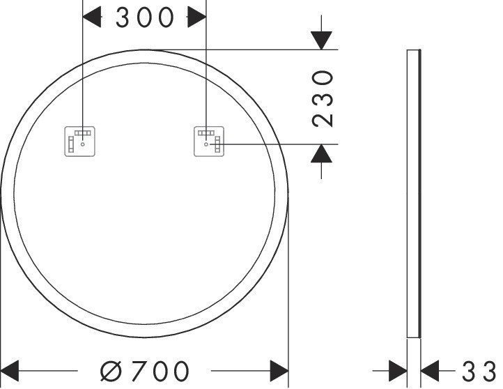 hansgrohe Spiegel Xarita Lite Q mit runder LED-Beleuchtung, mattschwarz, B 700 x H 700 x T 30 mm, 20 W