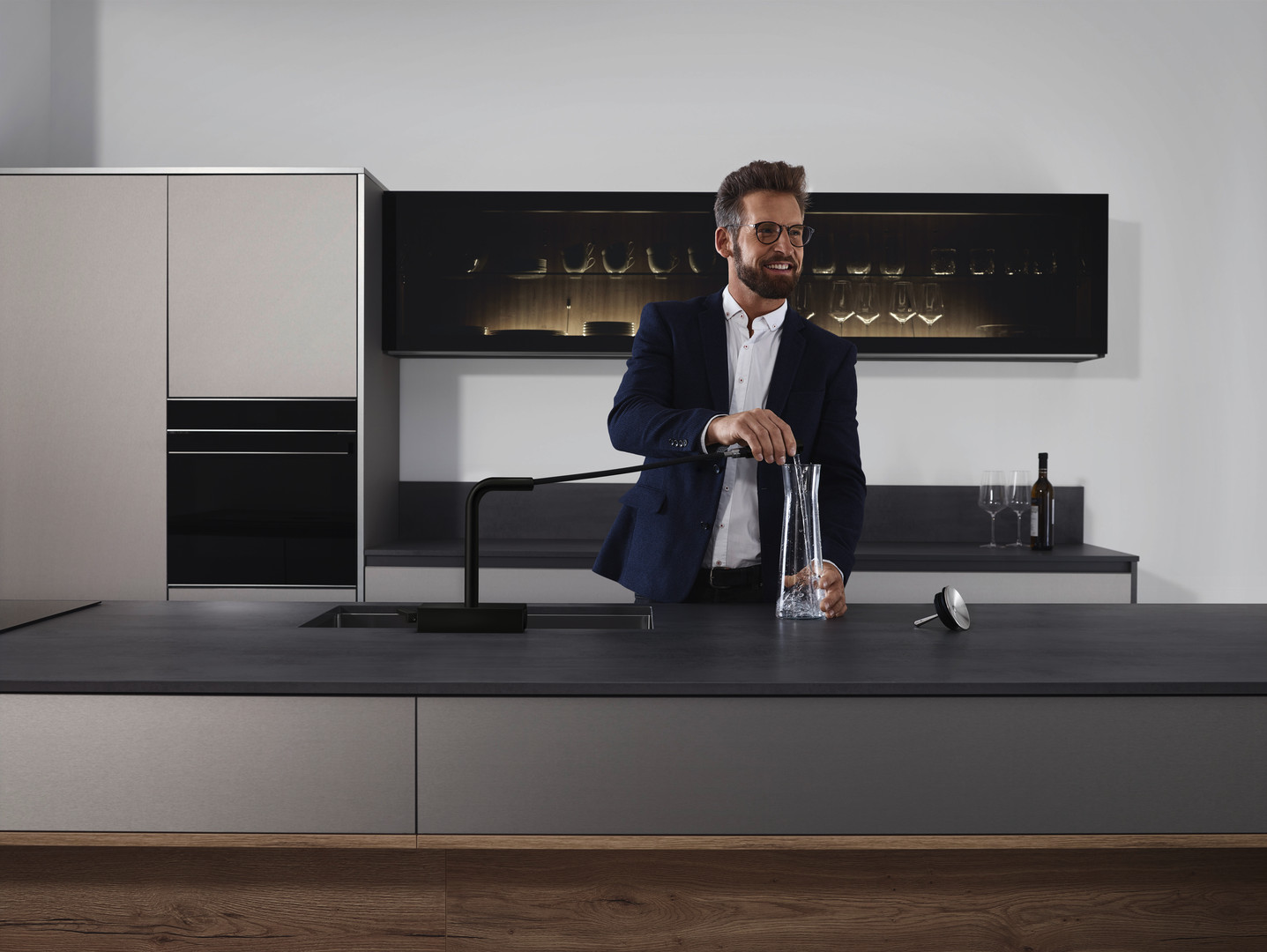 bestehend aus Einhebel-Küchenmischer, Schlauchbox, Multifunktionssieb, ComfortZone 250, L-Auslauf, Schwenkbereich einstellbar in 3 Stufen auf 60°, 110° oder 150°, Laminarstrahl, SatinFlow, Auszugslänge bis zu 760 mm, Umstellung von SatinFlow auf Ausziehbrause durch Tastendruck, MagFit magnetische Brausehalterung, Keramikmischsystem, max. Durchflussmenge bei 3 bar 6 l/min, Rückflussverhinderer integriert, nicht für Durchlauferhitzer geeignet, sBox für geschützte Schlauchführung im Unterschrank, Hahnlochbohrung mit 35 mm erforderlich, Hahnlochbohrung max. 50 mm von der Beckenrückwand, Quick Clean Antikalksystem
