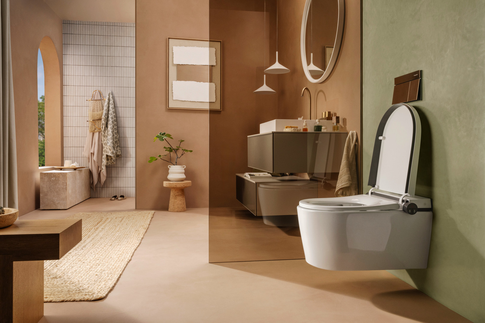 bestehend aus Dusch-WC, WC-Sitz, Fernbedienung, Schallschutzmatte nach Maß, mit Elektroanschluss, Material WC Keramik, Material WC-Sitz Brille Urea, Deckel PP, Material Fernbedienung Plastik, Glanzgrad glänzend, spülrandlos, max. 6 l/min., Anschlussspannung AC 220-240V 50/60Hz, Strahlart RearWash, LadyWash, Pulsation, Oscillation, einstellbare Intensität des Duschstrahls (3 Stufen), einstellbare Duschstabposition (3 Positionen), einstellbare Wassertemperatur (4 Stufen), Auto Open komfortable berührungslose Bedienung des Deckels, Warmlufttrockner mit individuell einstellbarer Temperatur (4 Stufen), Odor Extraction: reduziert unerwünschte Gerüche, Sitzheizung mit einstellbarer Temperatur (4 Stufen), komfortable Strahlarten Bedienung über Select-Taste, User Profiles individuelles Wassererlebnis auf Abruf, UV Disinfection, mehr Hygiene dank UV-Desinfektion, selbstreinigender Edelstahl-Duschstab, vor und nach Nutzung, LED-Nachtlicht, Stromsparmodus (Eco Mode) beendet die Sitzheizung nach 48 Std. Nichtnutzung, QuickRelease abnehmbarer WC-Sitz, SoftClose WC-Sitz mit Absenkautomatik