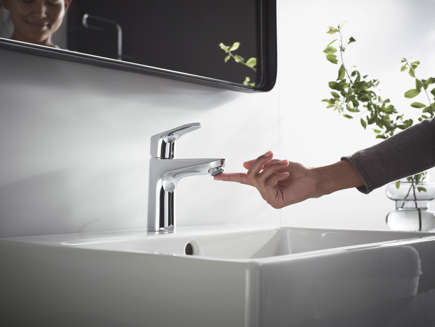 ComfortZone 100, Ausladung 119 mm, Auslaufhöhe 94 mm, Normalstrahl, max. Durchflussmenge bei 3 bar 5 l/min, Keramikmischsystem, Temperaturbegrenzung einstellbar, für Durchlauferhitzer geeignet, Zugstangen-Ablaufgarnitur G 1 1/4, Anschlussart G 3/8 Anschlussschläuche, Anschlussgröße DN 15, EcoSmart, Quick Clean Antikalksystem, AirPower Technologie, nicht für Aufsatzwaschtische geeignet
