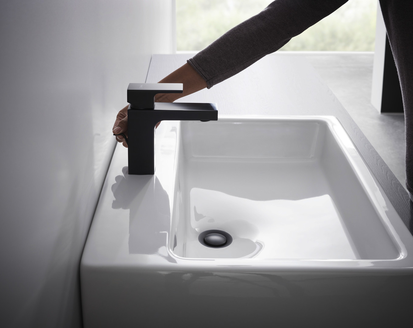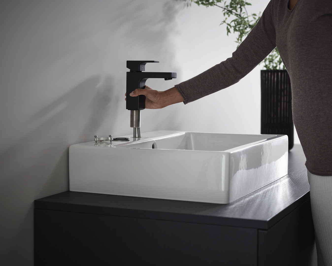 hansgrohe Waschtisch-Einhebelmischer 100 Vernis Shape mit Zugstangen-Ablaufgarnitur, mattschwarz W301667
