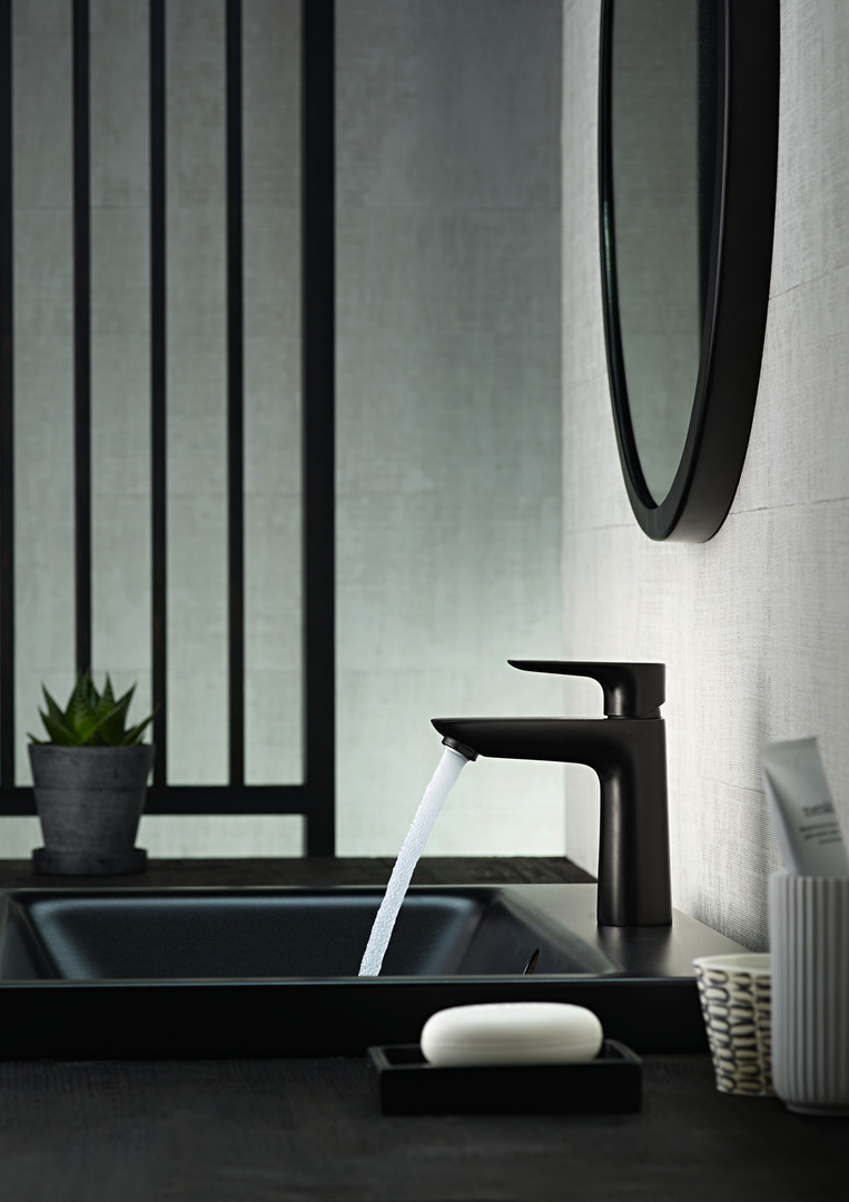 hansgrohe Waschtisch-Einhebelmischer 110 Talis E CoolStart mit Zugstangen-Ablaufgarnitur, mattschwarz 265535
