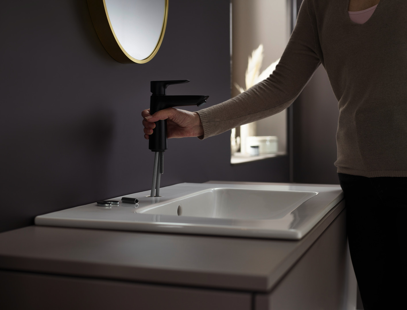 hansgrohe Waschtisch-Einhebelmischer 110 Talis E CoolStart mit Zugstangen-Ablaufgarnitur, mattschwarz 265535