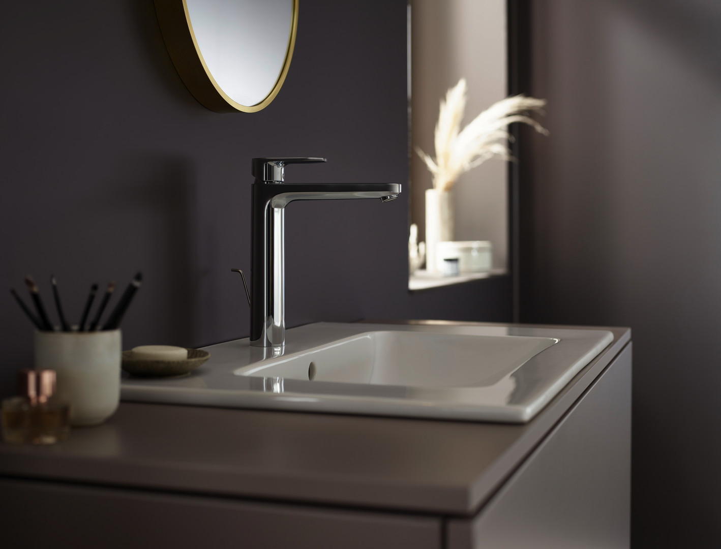hansgrohe Waschtisch-Einhebelmischer 190 Vernis Blend mit Zugstangen-Ablaufgarnitur, mattschwarz W301714