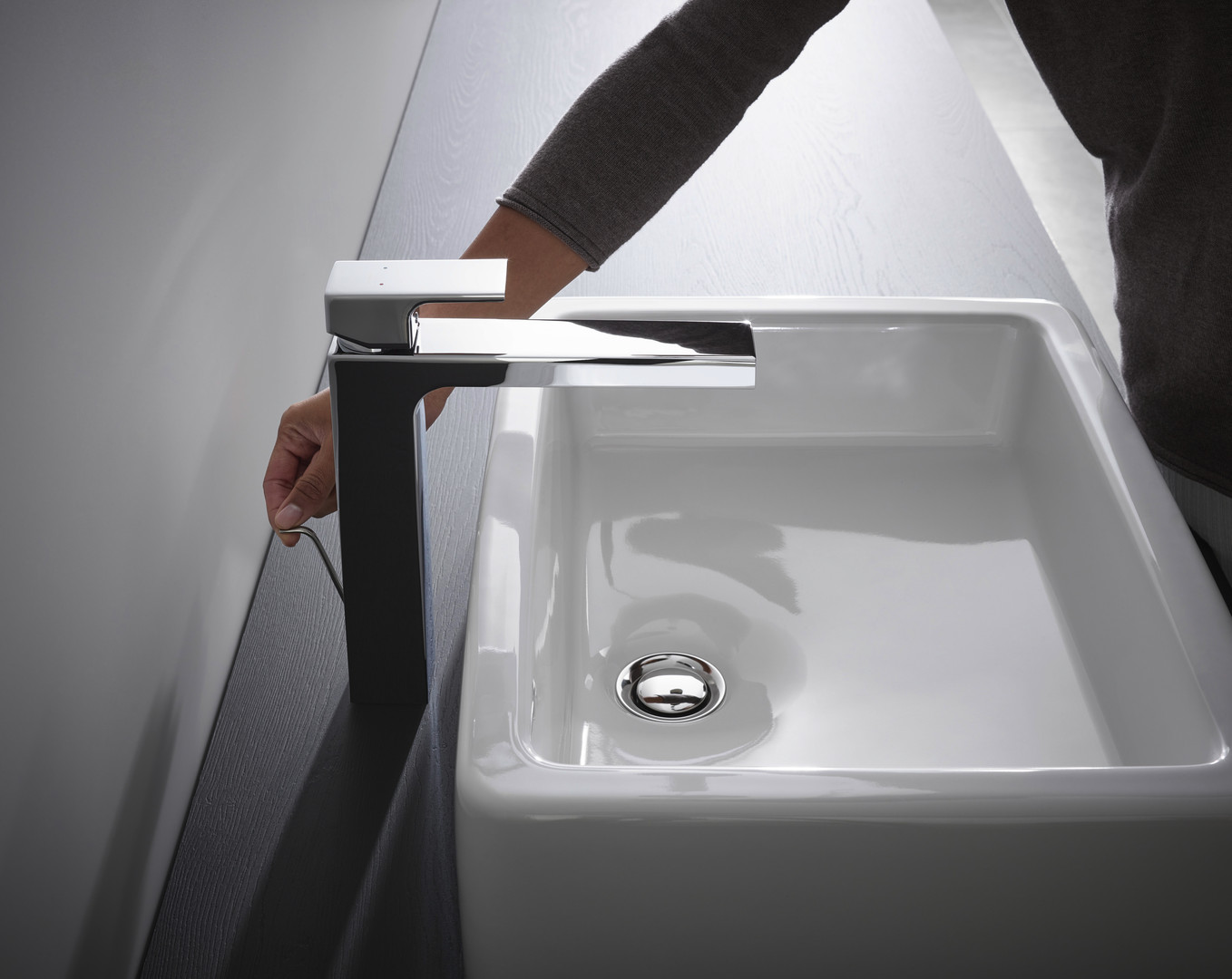 | Art der Ablaufgarnitur | Pop-up-Ventil mit vertikalem Hebel |