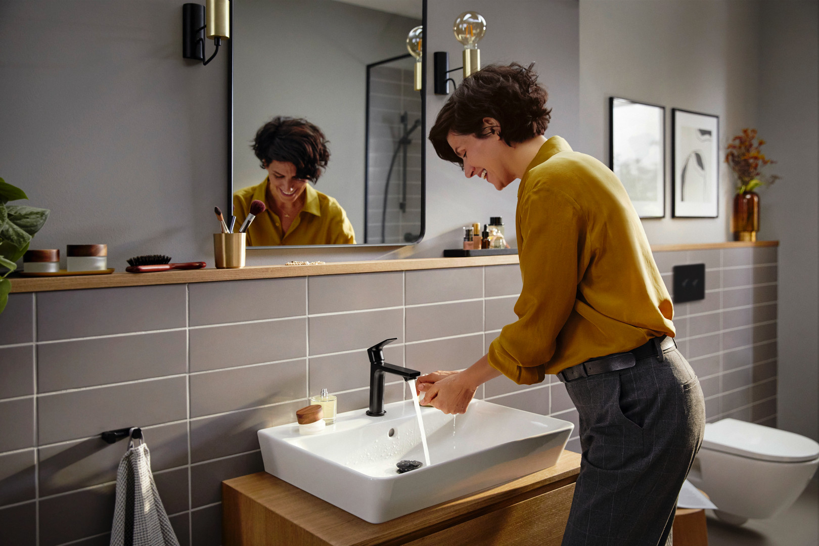 hansgrohe Waschtisch-Einhebelmischer Rebris E 110 CoolStart ohne Ablaufgarnitur, mattschwarz