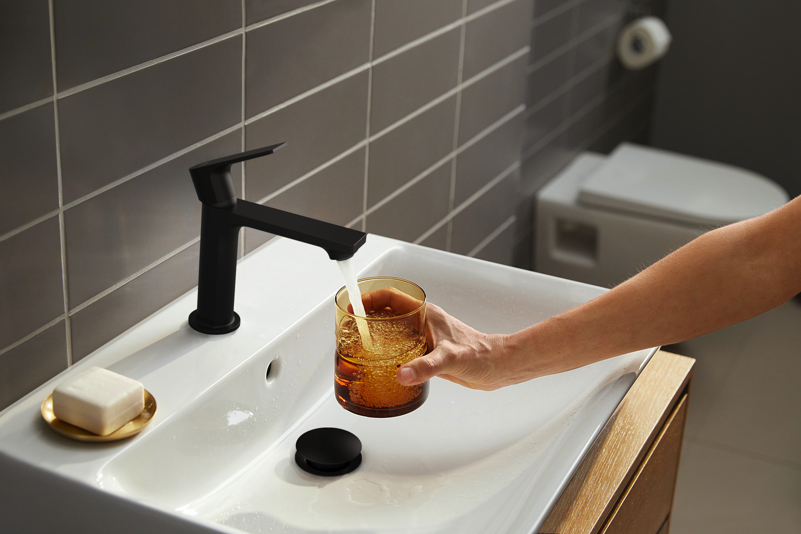 hansgrohe Waschtisch-Einhebelmischer Rebris E 110 CoolStart mit Zugstangen-Ablaufgarnitur, mattschwarz W302106