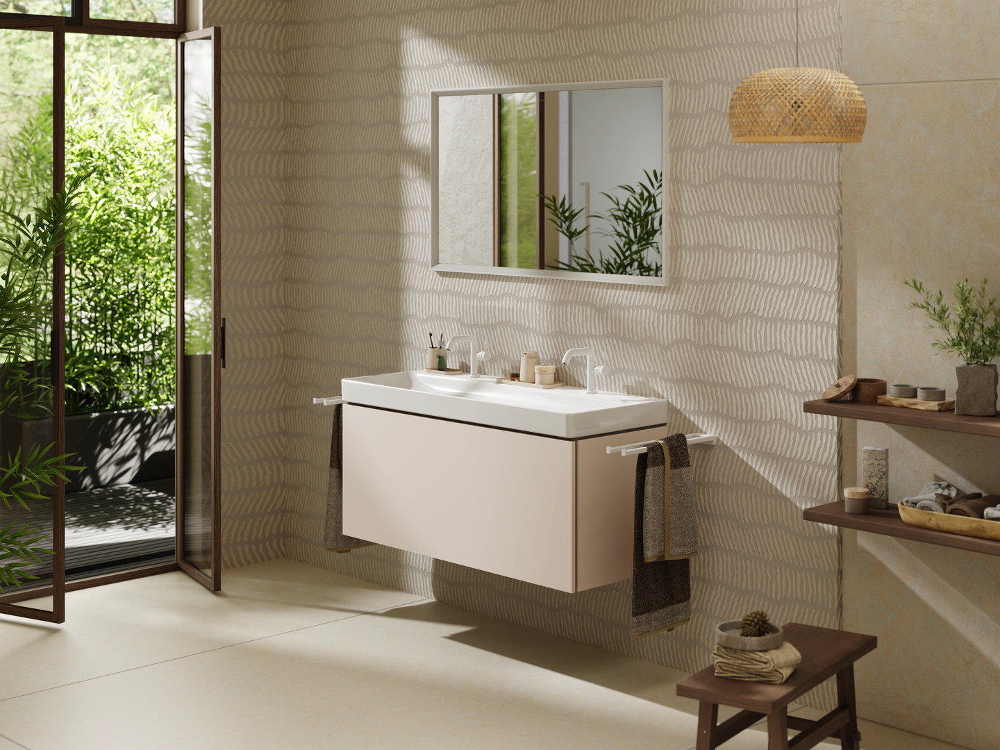 hansgrohe Waschtisch Xelu Q 1200x480mm, mit 2 Hahnlöchern, ohne Überlauf, SmartClean, weiß