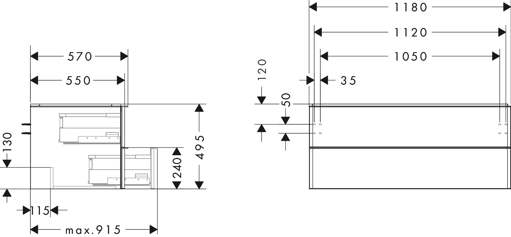 hansgrohe Waschtischunterschrank Xelu Q 1180x485x550mm, 2 Schubkästen, diamantgrau matt, mattschwarz W494345