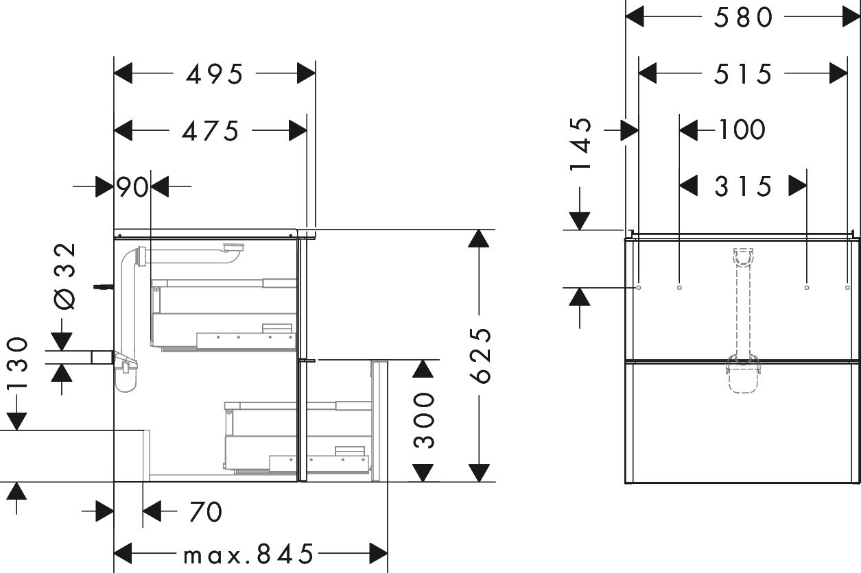 hansgrohe Waschtischunterschrank Xelu Q 580x605x475mm, 2 Schubladen, diamantgrau matt, mattschwarz W494213