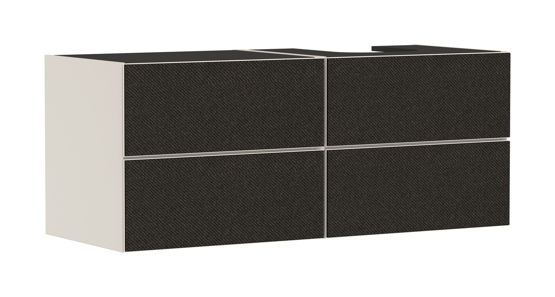 für Konsolen mit Aufsatzwaschtisch, geschliffen, Korpus: MDF, Oberfläche Korpus: Lack, Frontrahmen: Aluminium, Oberfläche Frontrahmen: Pulverlack, SmoothSurface, AntiFingerprint, Moisture Proof, grifflos, PushOpen-Funktion, Vollauszug, ohne Siphonausschnitt, SoftClose, Inneneinteilung, mit Basis Boxen Set, mit Raumsparsiphon Sperrwasserhöhe 50 mm, Wandmontage, vormontiert, mit Befestigungsmaterial, Wechseln der Fronten möglich