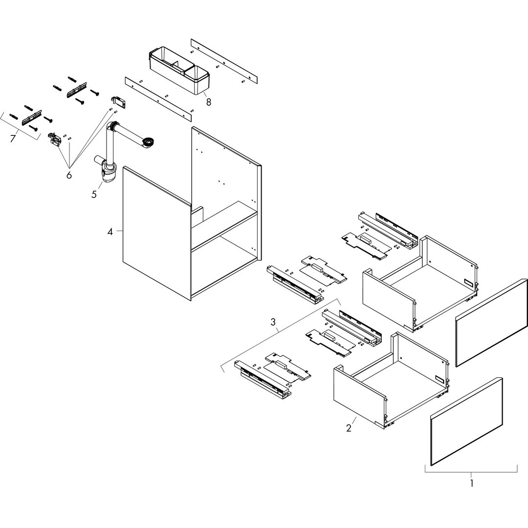 hansgrohe Waschtischunterschrank Xevolos E 580x555x475mm, 2 Schubladen, mattweiß, weiß metallic W494006
