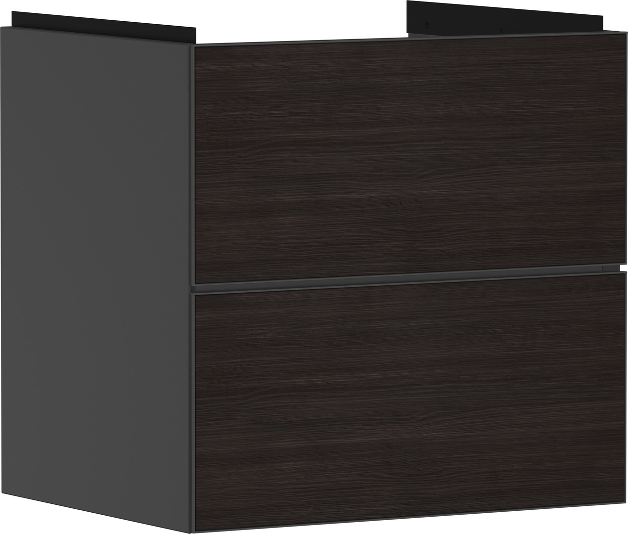 hansgrohe Waschtischunterschrank Xevolos E 580x555x475mm, 2 Schubladen, schiefergrau matt, Eiche dunkel