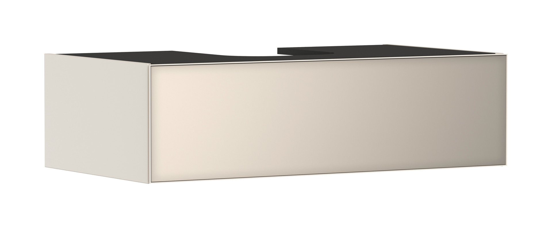 Korpus: MDF, Oberfläche Korpus: Lack, Frontrahmen: Aluminium, Oberfläche Frontrahmen: Pulverlack, SmoothSurface, AntiFingerprint, Moisture Proof, grifflos, PushOpen-Funktion, Vollauszug, ohne Siphonausschnitt, SoftClose, Inneneinteilung, mit Basis Boxen Set, mit Raumsparsiphon Sperrwasserhöhe 50 mm, Wandmontage, vormontiert, mit Befestigungsmaterial