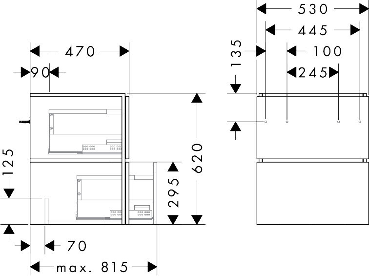 hansgrohe Waschtischunterschrank Xilesa E 530x470mm, 2 Schubkästen, für Waschtisch, ohne PushOpen, mattweiß