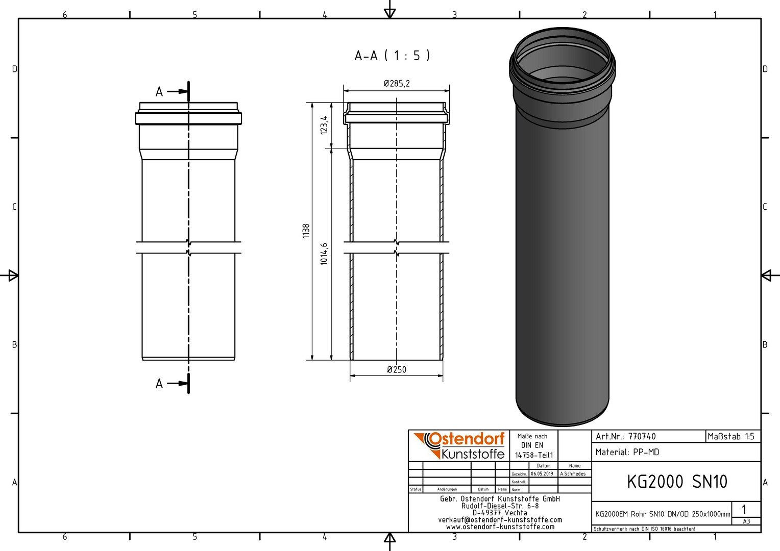 Ostendorf KG2000 Rohr SN 10 EM DN/OD 250, 1000 mm, mit Muffe