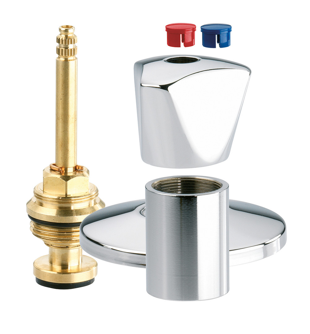 bestehend aus Dreikanthaubengriff aus Kunststoff mit Wechselclip warm/kalt, Hülse verchromt, Rosette chrom, Innenoberteil mit Fettkammer- und Druckausgleichstechnik