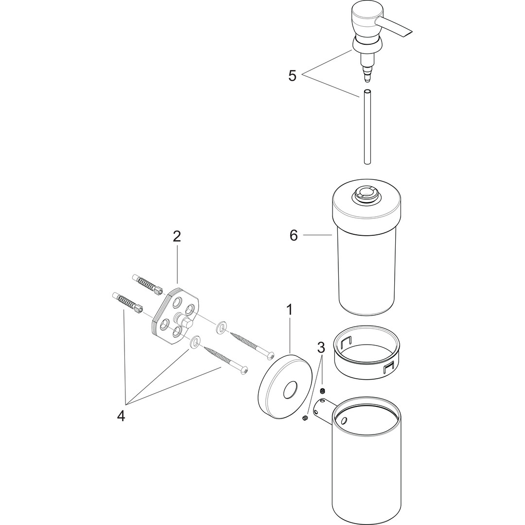 für Flüssigseife, Füllmenge 125 ml, Halteelement aus Metall, Dosiermenge 1,5 ml pro Hub, mit Befestigungsmaterial, verdeckte Befestigung, Bohrabstand 35 mm, Durchmesser Bohrloch 6 mm