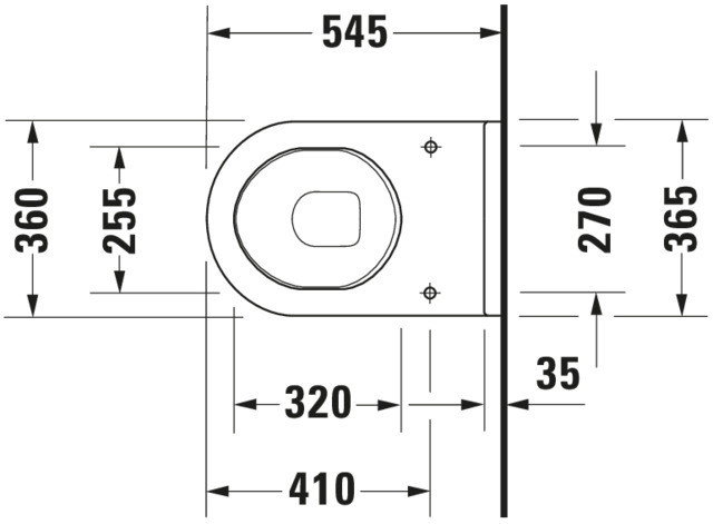 Duravit Wand-Tiefspül-WC Comfort Starck 3 36,5x54,5cm, 6 l, Sitzhöhe +5cm, weiß WonderGliss