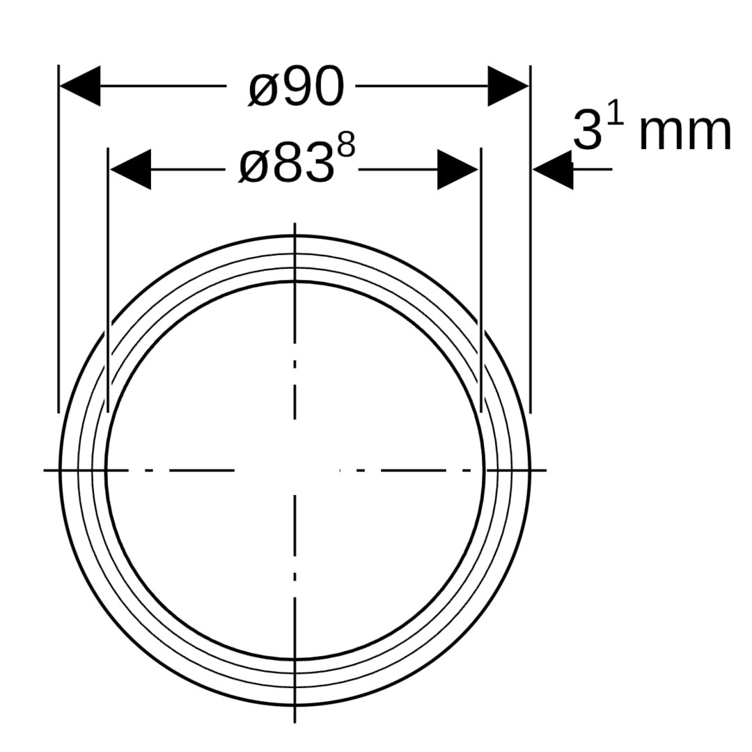 | Rohraußendurchmesser Anschluss 1 | 90 mm |