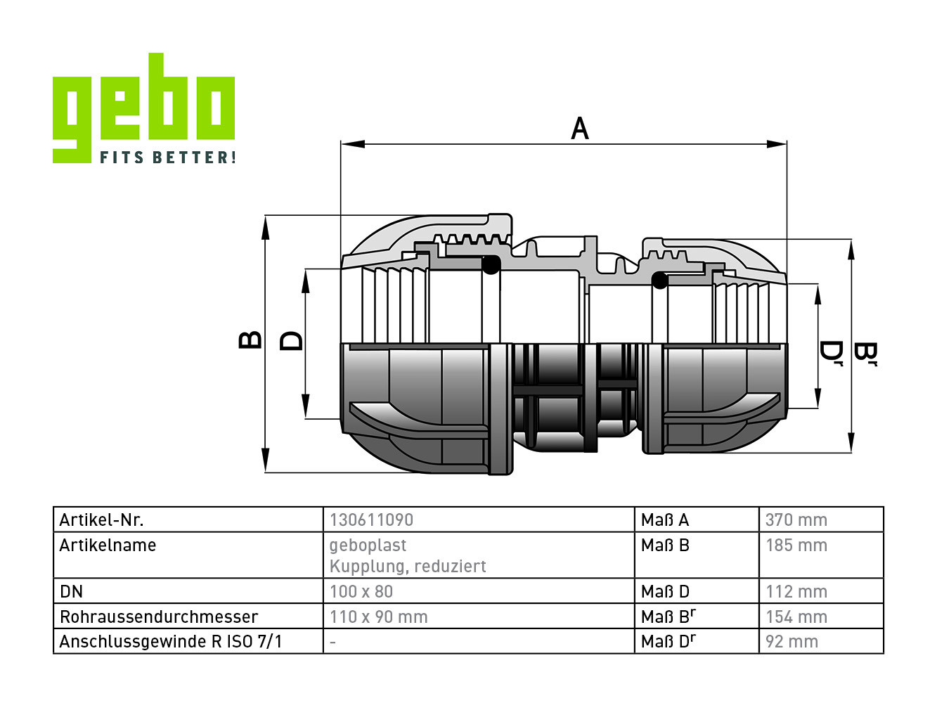 Gebo Plast Kupplung 110 x 90 mm, reduziert