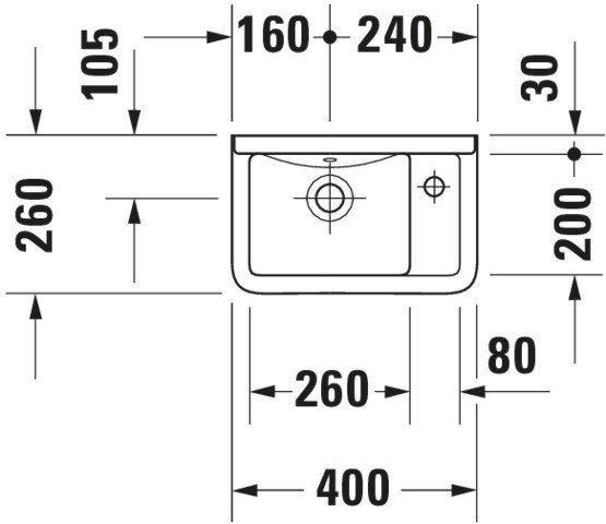Duravit Handwaschbecken Starck 3 40x26cm, Hahnloch rechts, mit Überlauf, Hahnlochbank, weiß W31345