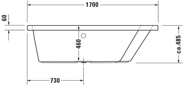 Duravit Badewanne Paiova 170 x 100 x 46 cm, Einbauversion, 1 Rückenschräge rechts, weiß W206938