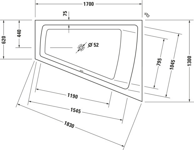 Duravit Badewanne Paiova 170 x 130 x 46 cm, Einbauversion, 1 Rückenschräge rechts, weiß W206940