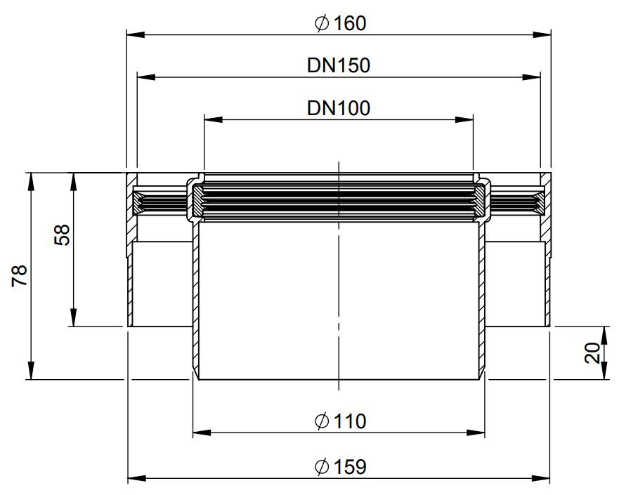 Durchmesser Anschluss 1 110/160 mm