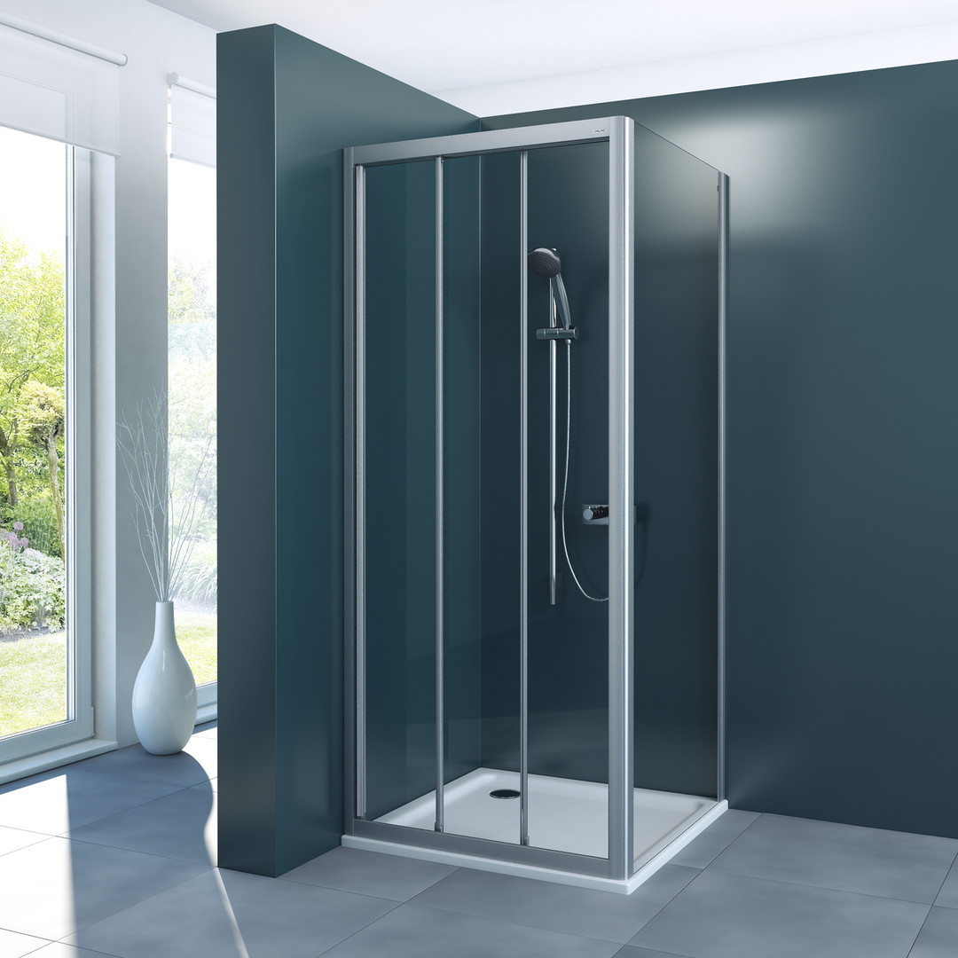 Palme Schiebetür Drive 1.0 3-teilig, 97/98,5/97 x 200 cm, AK ESG nano, alusilber