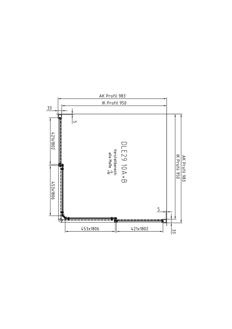 Kunststoffglas 3 mm, Standardhöhe 1900 mm, ein Teil fest, ein Teil verschiebbar, Bodenschiene 35 mm hoch, mit Griffleiste, PALM.motion, PALM.isi-clean, optional PALM.care